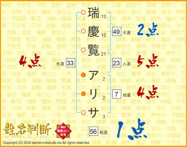 瑞慶覧アリサさんの外運は33画の4点!
