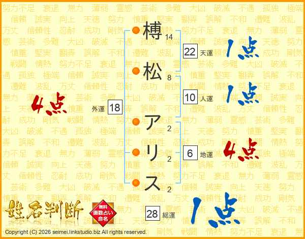 榑松アリスさんの外運は18画の4点!
