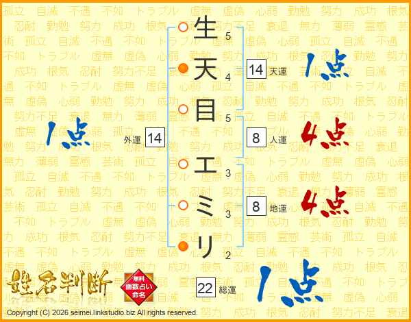生天目エミリさんの天運は14画の1点!