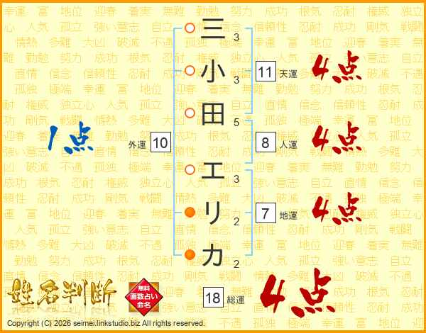 三小田エリカさんの総運は18画の4点!