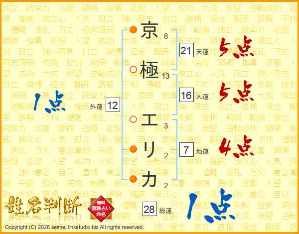 京極エリカさんの天運は21画の5点!