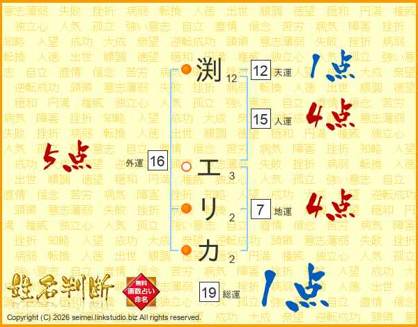 渕エリカさんの総運は19画の1点!