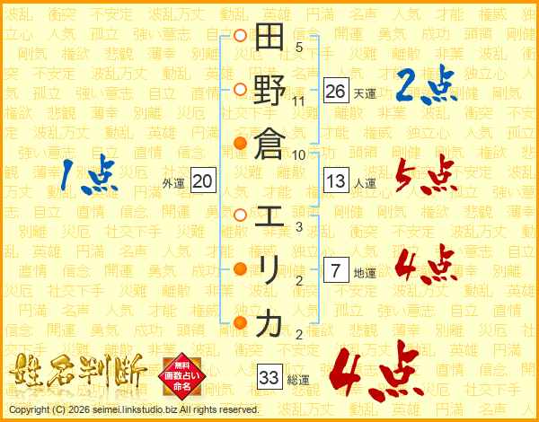田野倉エリカさんの総運は33画の4点!