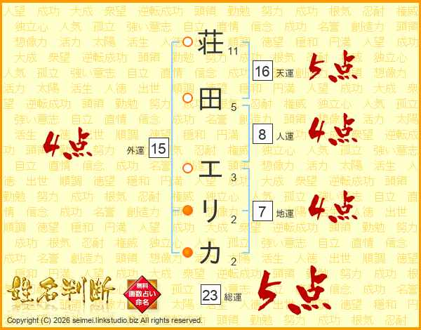 荘田エリカさんの総運は23画の5点!
