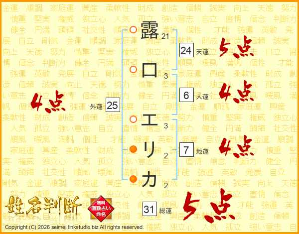 露口エリカさんの総運は31画の5点!