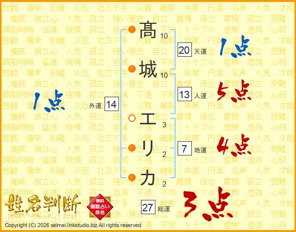 髙城エリカさんの人運は13画の5点!