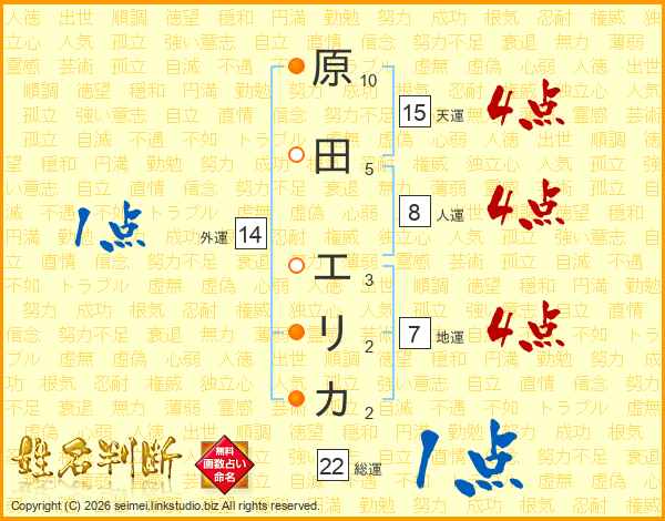 原田エリカさんの総運は22画の1点!