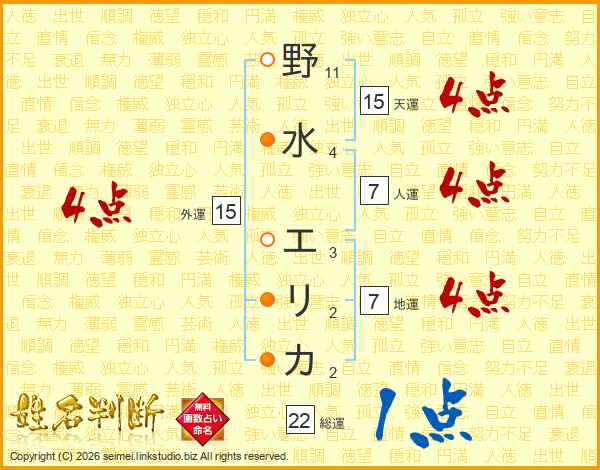 野水エリカさんの総運は22画の1点!