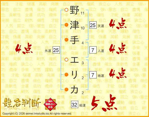 野津手エリカさんの天運は25画の4点!
