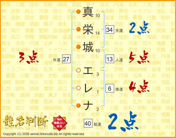 真栄城エレナさんの総運は40画の2点!