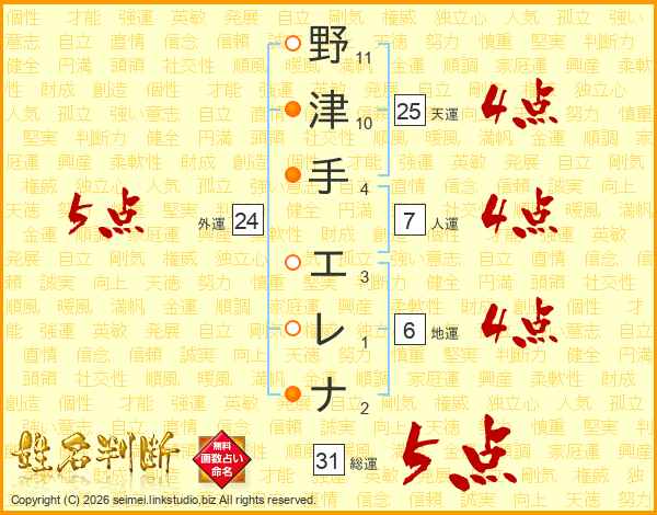 野津手エレナさんの天運は25画の4点!