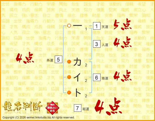 一カイトさんの総運は7画の4点!