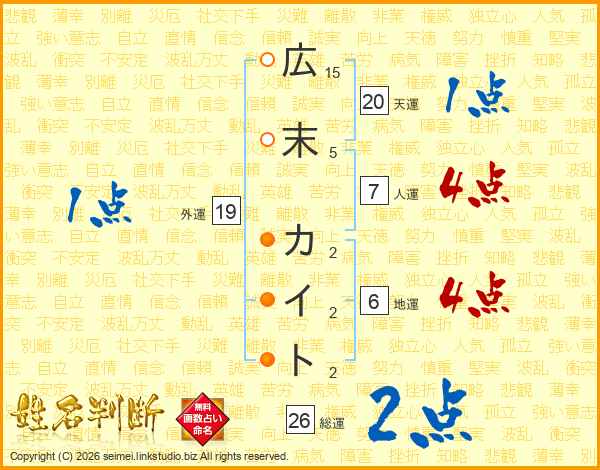 広末カイトさんの総運は26画の2点!