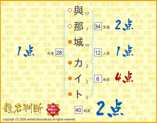 與(17画)那(7画)城(10画) カ(2画)イ(2画)ト(2画)