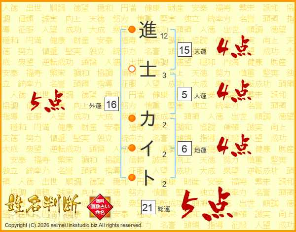 進士カイトさんの総運は21画の5点!