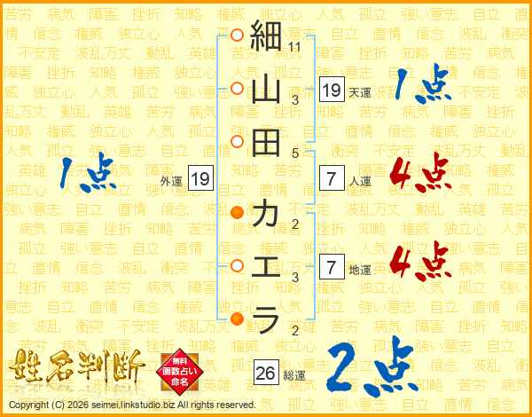 細山田カエラさんの総運は26画の2点!
