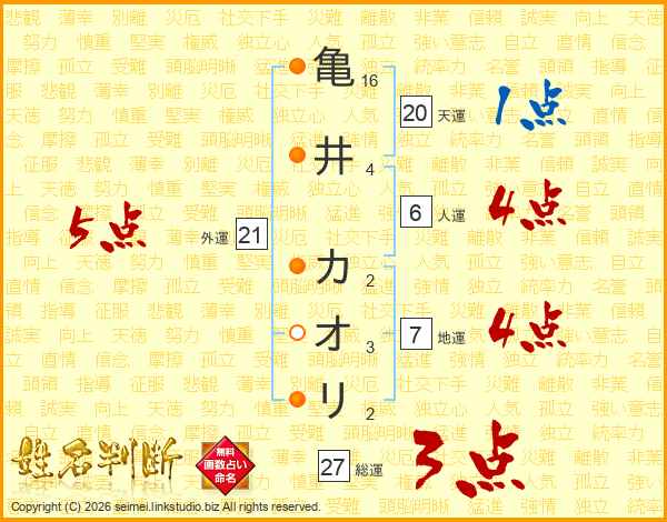 亀井カオリさんの外運は21画の5点!