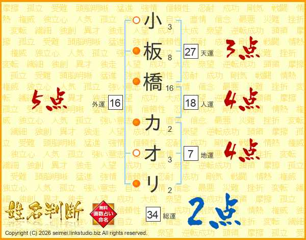 小板橋カオリさんの総運は34画の2点!