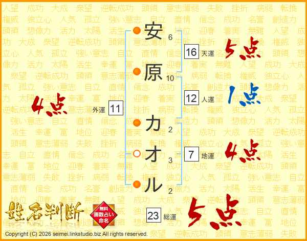 安原カオルさんの総運は23画の5点!