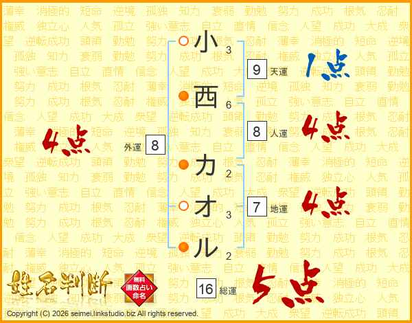 小西カオルさんの外運は8画の4点!