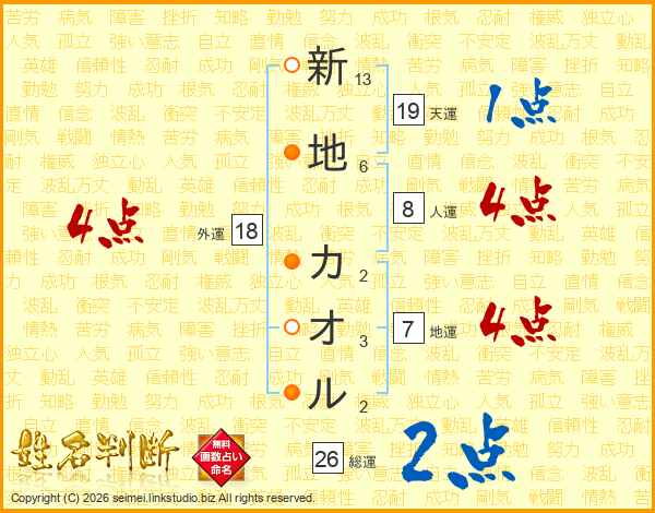 新地カオルさんの総運は26画の2点!