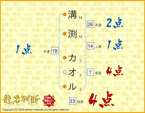 溝渕カオルさんの総運は33画の4点!