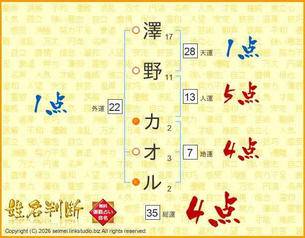 澤野カオルさんの総運は35画の4点!
