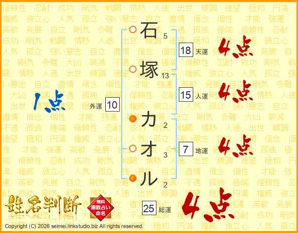 石塚カオルさんの天運は18画の4点!