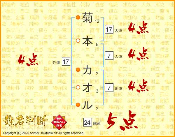 菊本カオルさんの天運は17画の4点!