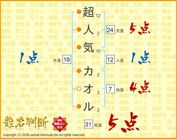 超人気カオルさんの総運は31画の5点!