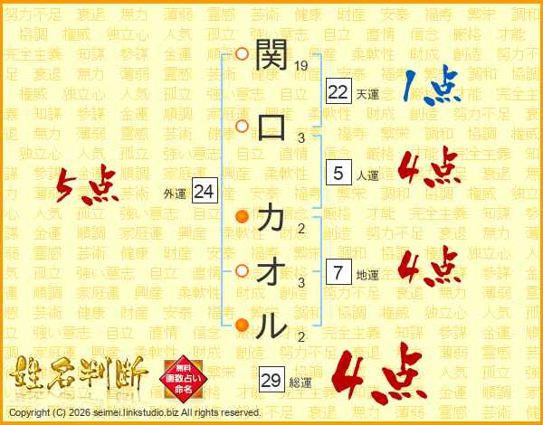 関口カオルさんの外運は24画の5点
