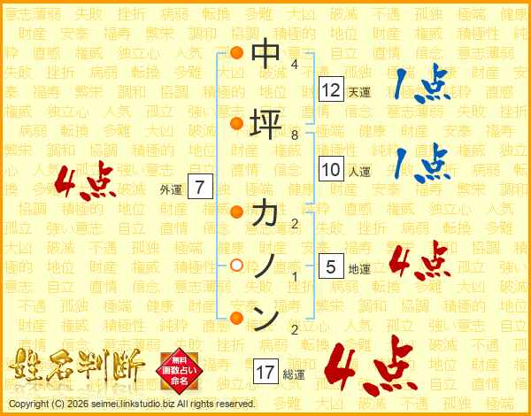 中坪カノンさんの外運は7画の4点!