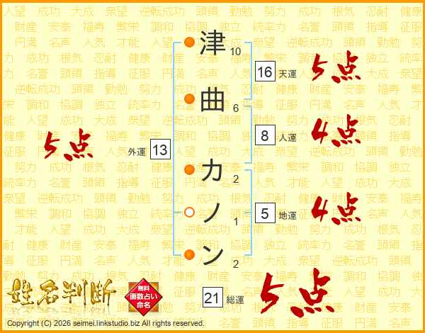 津(10画)曲(6画) カ(2画)ノ(1画)ン(2画)
