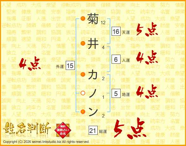 菊(12画)井(4画) カ(2画)ノ(1画)ン(2画)