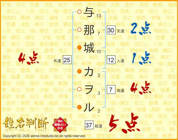 与那城カヲルさんの総運は37画の5点!