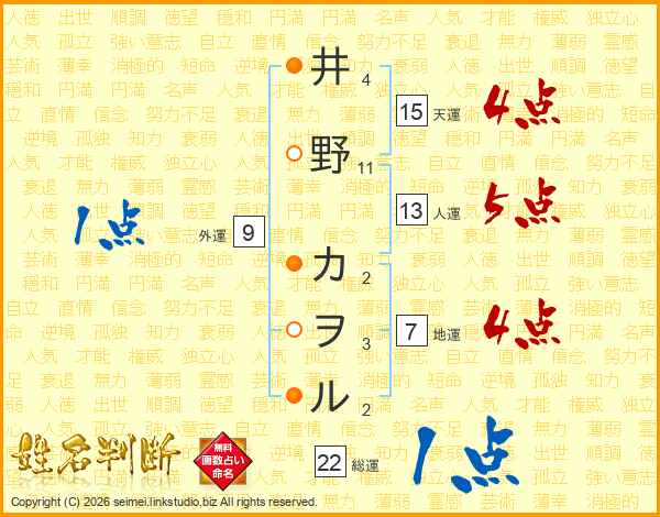 井野カヲルさんの総運は22画の1点!