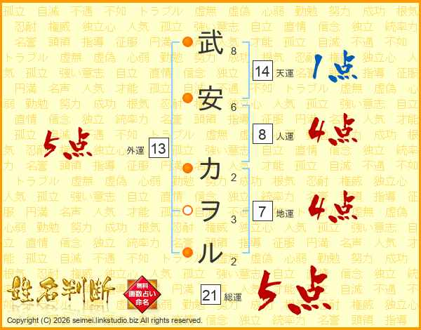 武安カヲルさんの総運は21画の5点!