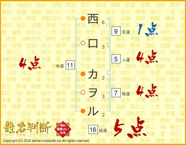 西口カヲルさんの総運は16画の5点!