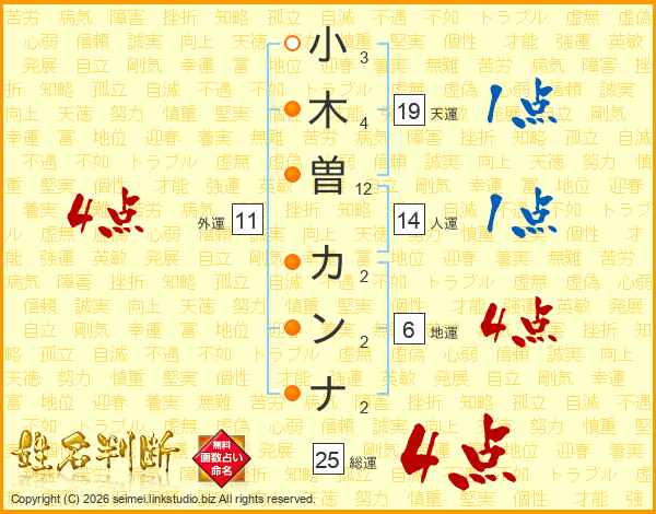 小木曽カンナさんの総運は25画の4点!