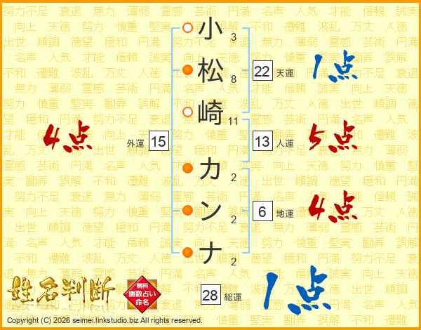 小松崎カンナさんの総運は28画の1点!