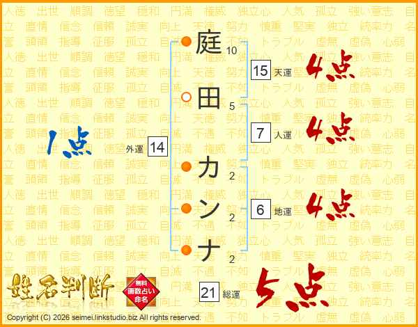 庭田カンナさんの総運は21画の5点!