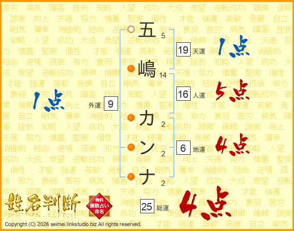五嶋カンナさんの総運は25画の4点!