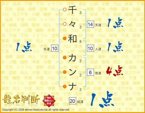 千々和カンナさんの総運は20画の1点!