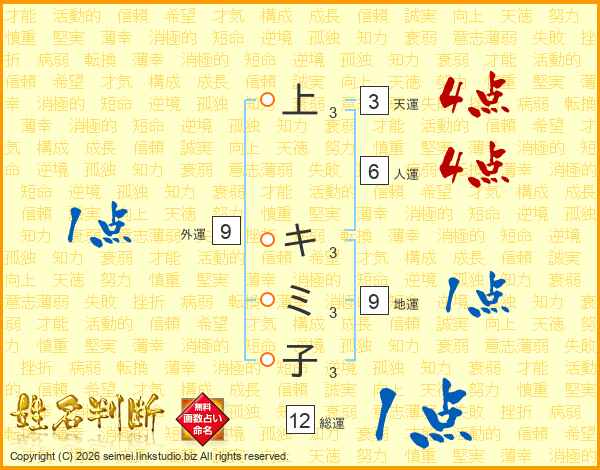 上キミ子さんの総運は12画の1点!