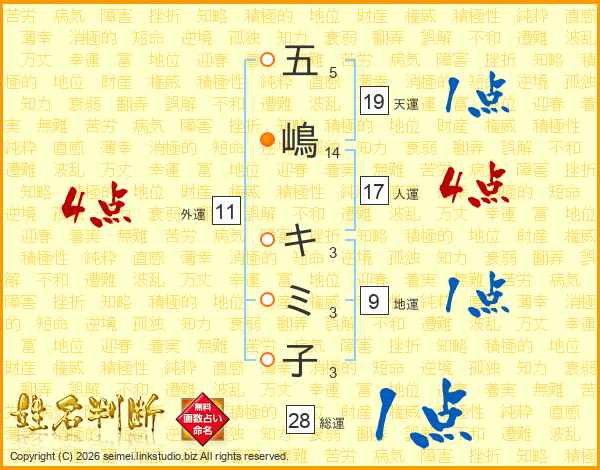 五嶋キミ子さんの外運は11画の4点!