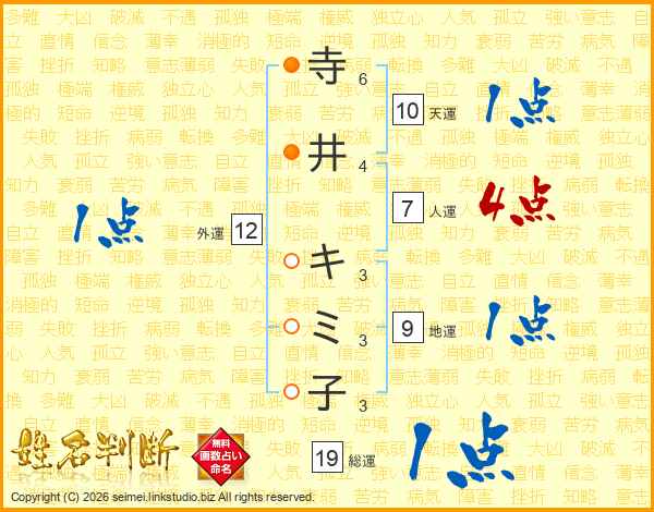 寺(6画)井(4画) キ(3画)ミ(3画)子(3画)