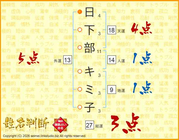 日下部キミ子さんの総運は27画の3点!