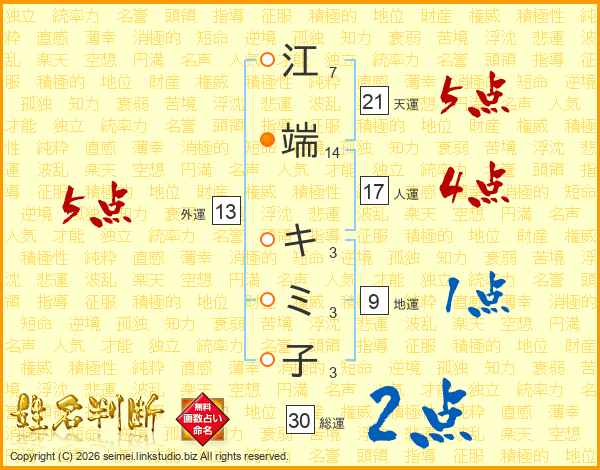 江端キミ子さんの総運は30画の2点!