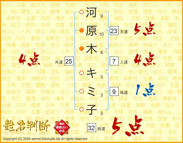 河原木キミ子さんの総運は32画の5点!