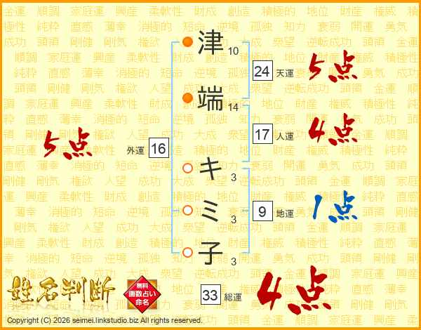 津端キミ子さんの総運は33画の4点!